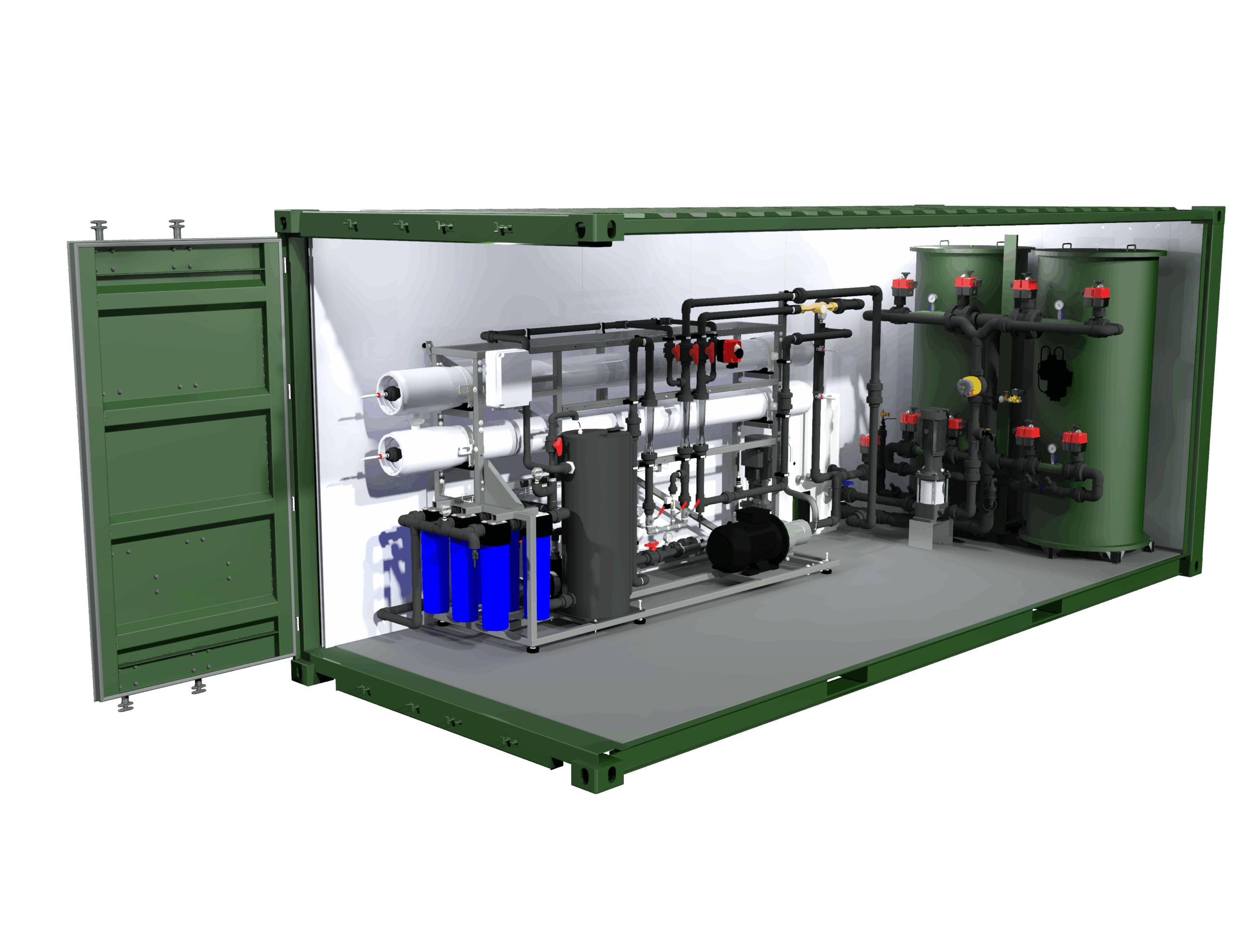L’osmose inverse est un procédé de purification de l’eau contenant des matières en solution, par un système de filtrage très fin qui ne laisse passer que les molécules d’eau. Eicace, ce maillage très fin nécessite souvent un prétraitement en amont pour ne pas colmater les membranes d’osmose. Le prétraitement peut prendre la forme d’un ou de plusieurs process en série : physico-chimique, filtre à sable, résine, ultrafiltration... La pression de fonctionnement varie selon la qualité de l’eau à traiter de 10 à 40 bars. Le rendement est contenu aux alentours de 65 %.